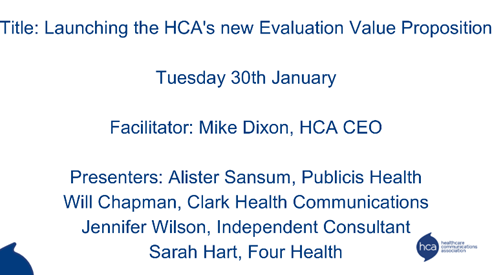 But we did more than just listen. In response, an HCA working group from industry and agency has developed a new Evaluation Value Proposition, providing everyone who is involved in health communications with a useful guide to why measurement and evaluation is fundamental to our work, which can act as a catalyst for discussions between all stakeholders.